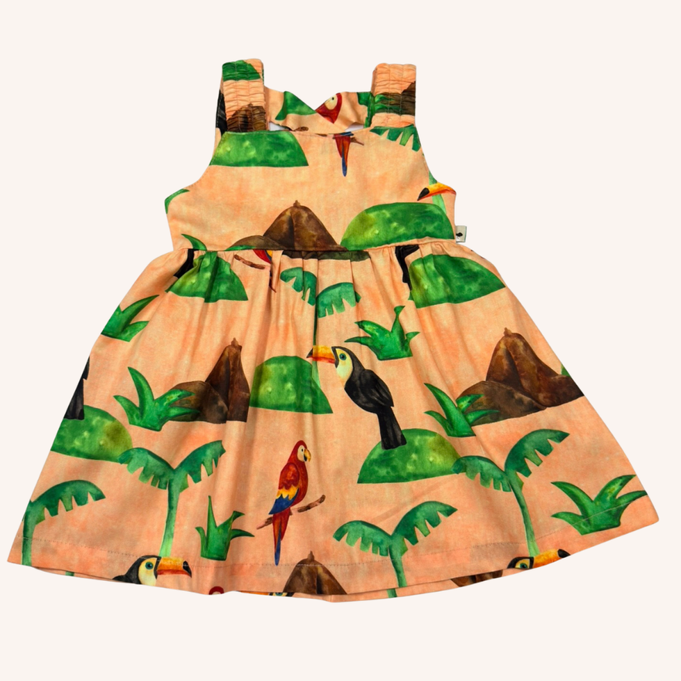 Vestido confeccionado em tricoline 100% algodão. Abertura nas costas com um detalhe em X e elástico.